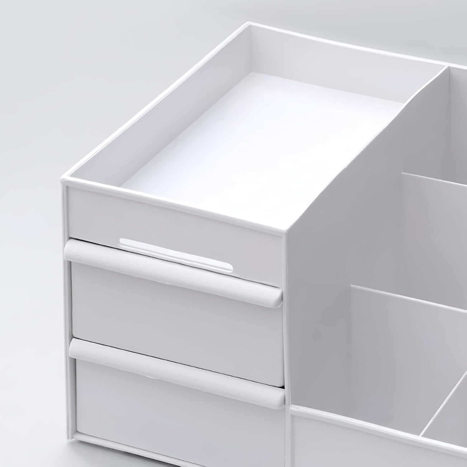 HETOPETO Cosmetic Organizer Box Drawers Storage Plastic Stationary Box | Make Up Organiser for Women (White)
