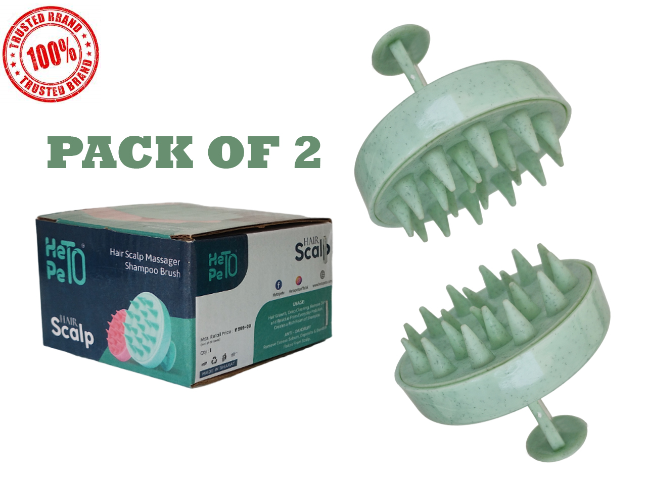HETOPETO Hair Scalp Massager Shampoo Brush, Stimulates Hair Growth, Anti-Dandruff, Relaxing Scalp Care Gray Pack of 2
