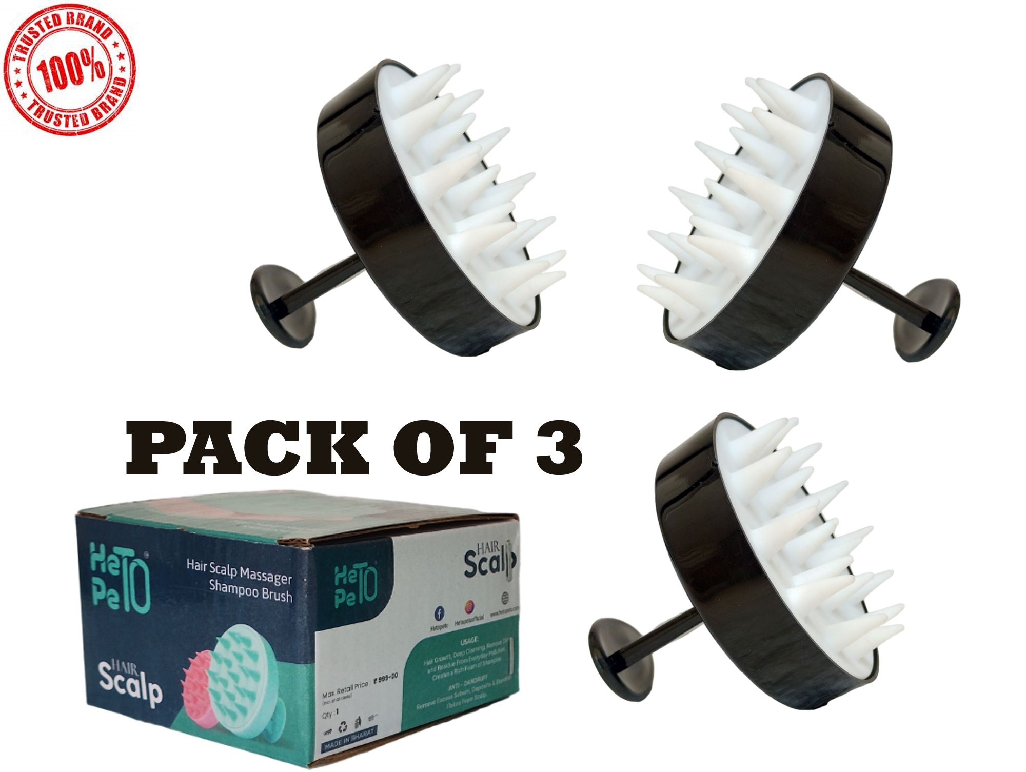 HETOPETO Hair Scalp Massager Shampoo Brush, Stimulates Hair Growth, Anti-Dandruff, Relaxing Scalp Care Black & White Pack of 3
