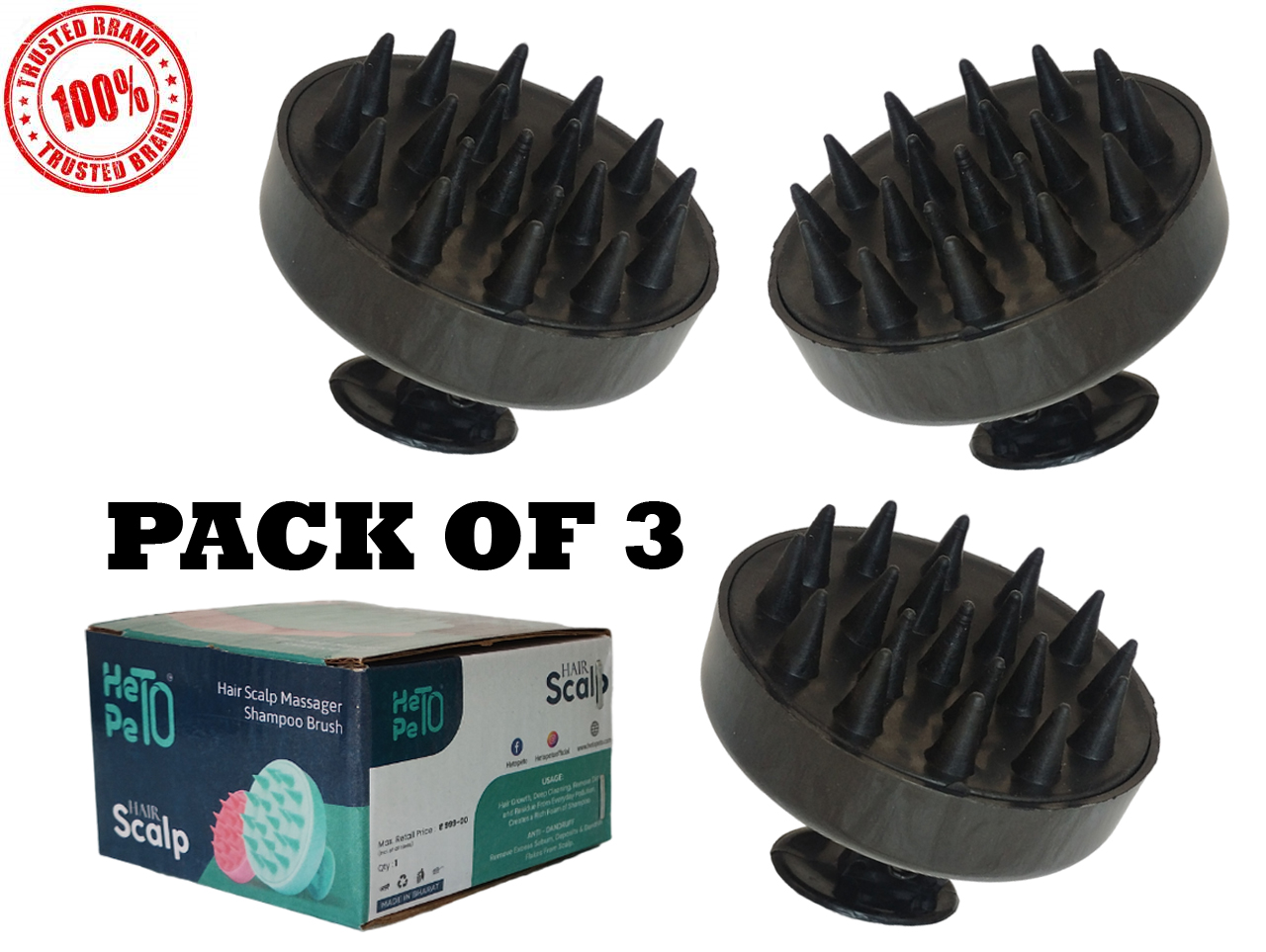 HETOPETO Hair Scalp Massager Shampoo Brush, Stimulates Hair Growth, Anti-Dandruff, Relaxing Scalp Care Black Pack of 3