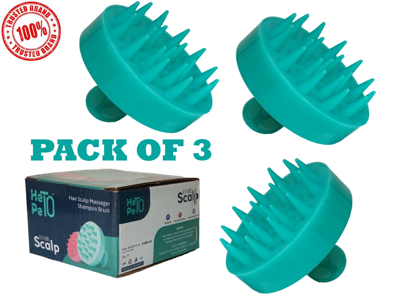 HETOPETO Hair Scalp Massager Shampoo Brush, Stimulates Hair Growth, Anti-Dandruff, Relaxing Scalp Care Cyan Pack of 3