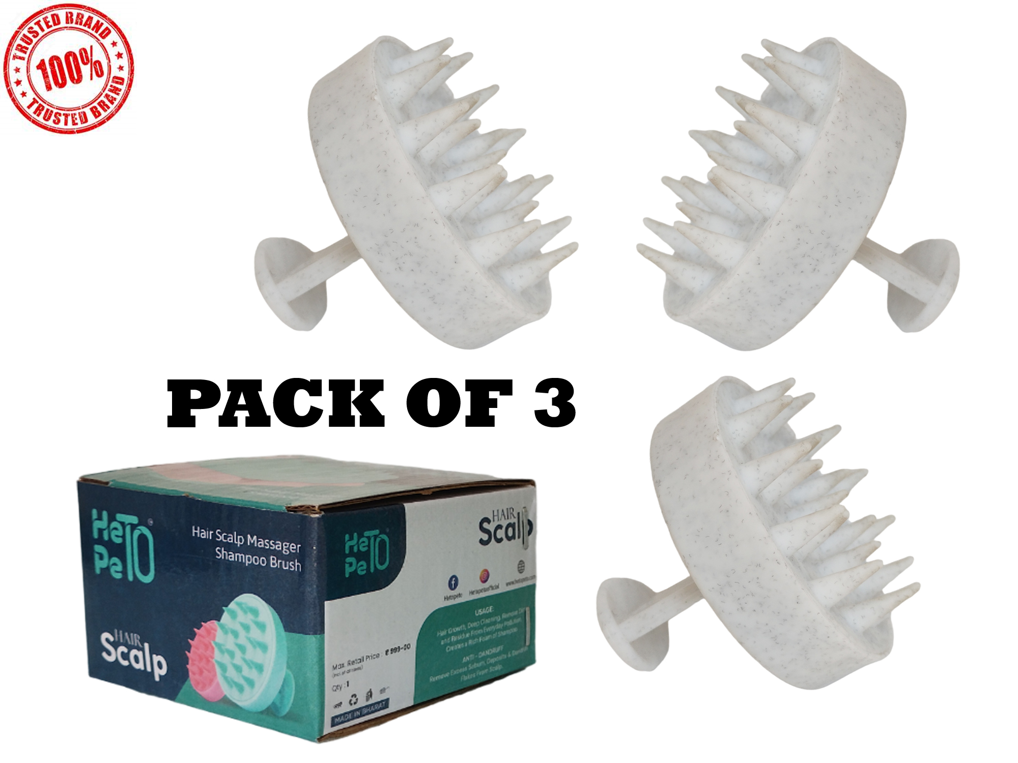HETOPETO Hair Scalp Massager Shampoo Brush, Stimulates Hair Growth, Anti-Dandruff, Relaxing Scalp Care White Pack of 3