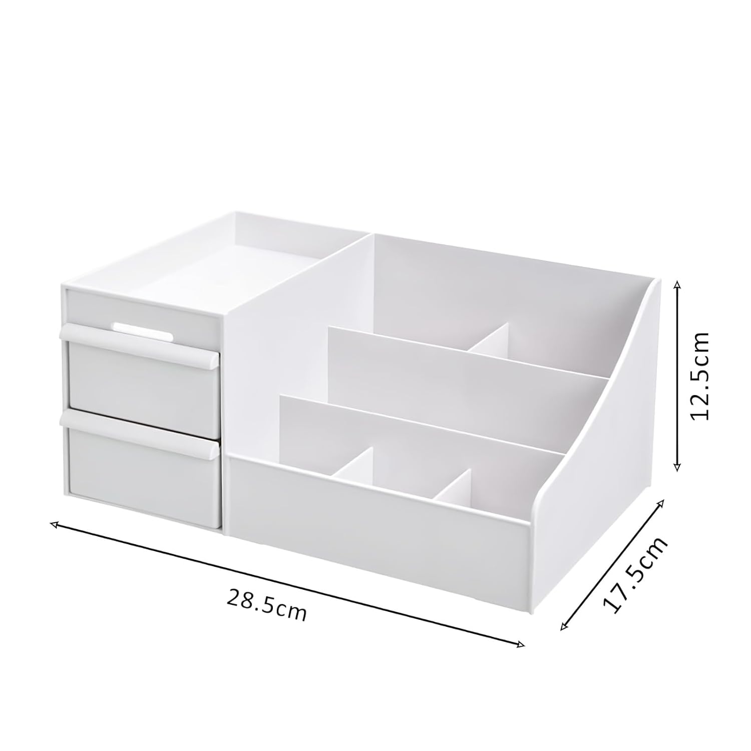 HETOPETO Cosmetic Organizer Box Drawers Storage Plastic Stationary Box | Make Up Organiser for Women (White)